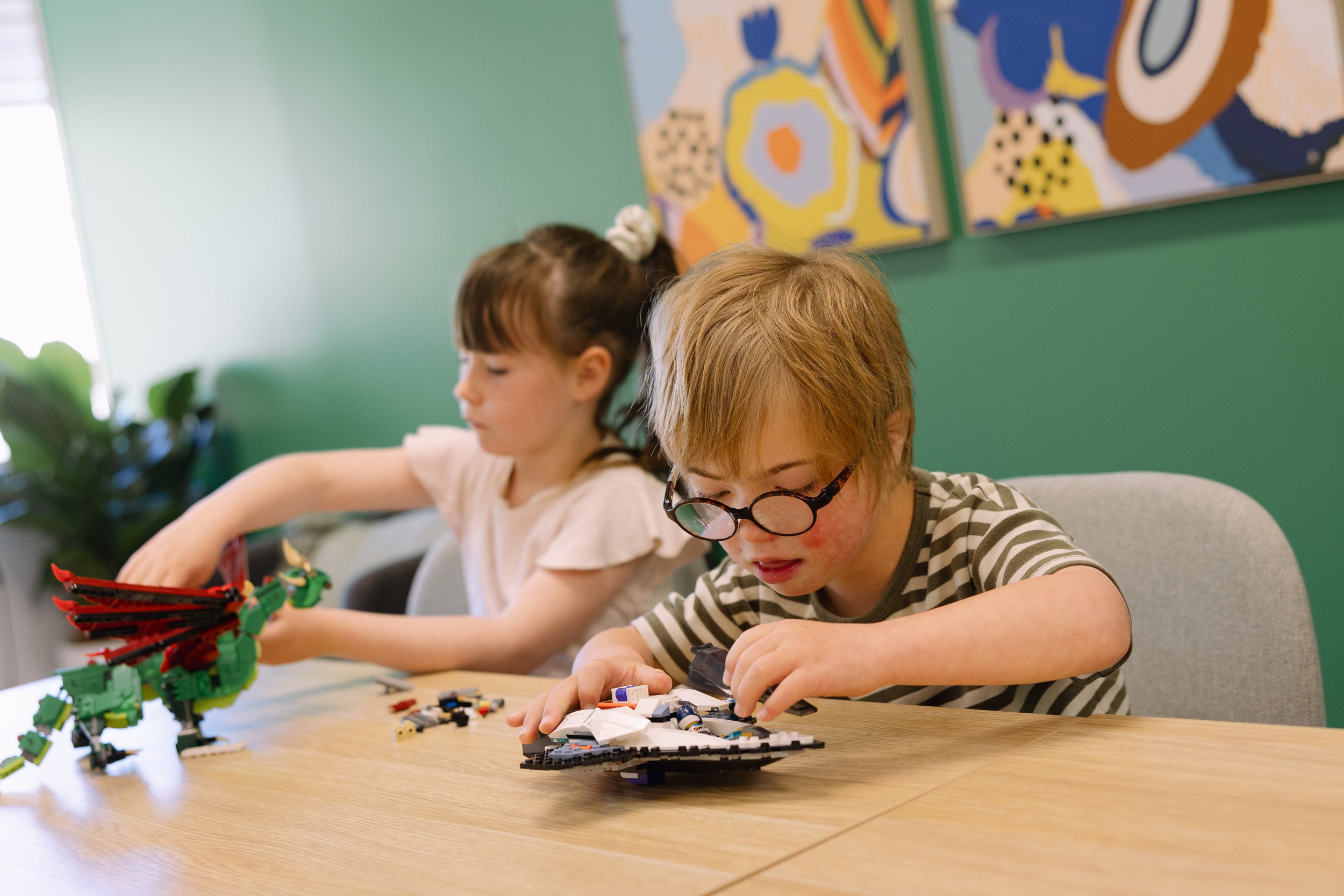 Lego-based therapy for neuro-affirming psychological intervention that promotes social interaction, sharing and collabortive problem solving.